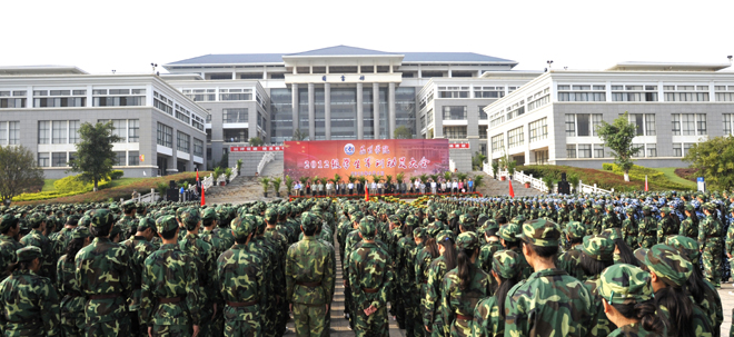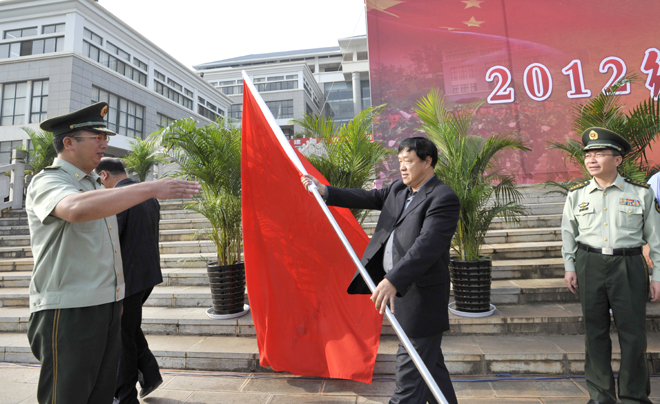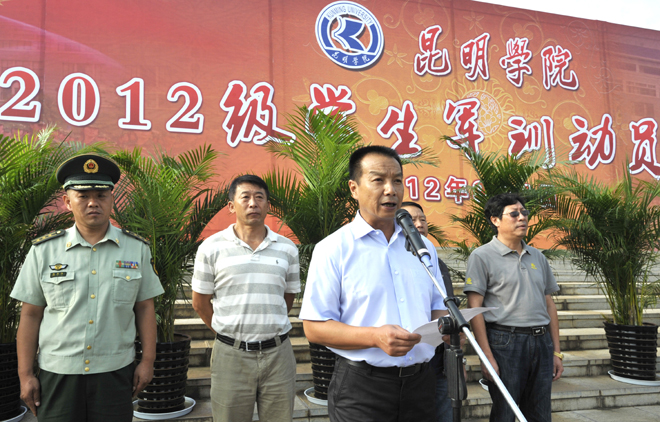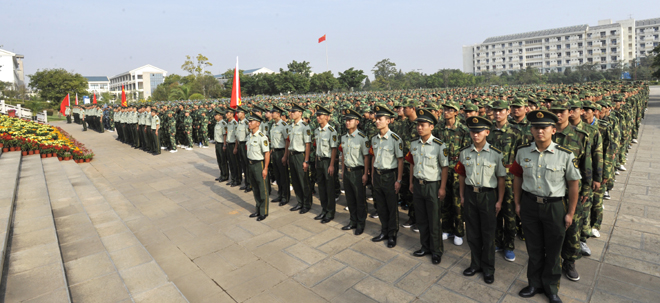 9月4日上午,威尼斯官网2012级学生军训动员大会在聂耳广场举行。武警边防部队士官学校训练部部长李荣,学生军训团团长陈应海、副团长申仕兵,继续教育处处长孙利辉,信息技术系主任赵立志,学校党委副书记、国防教育委员会主任孙勇,副校长、国防教育委员会副主任李翔,学校国防教育委员会全体成员,各院(系)主管学生工作领导,带队辅导员、全体承训官兵和2012级4600余名参训同学参加了动员大会。大会由副校长李翔主持。