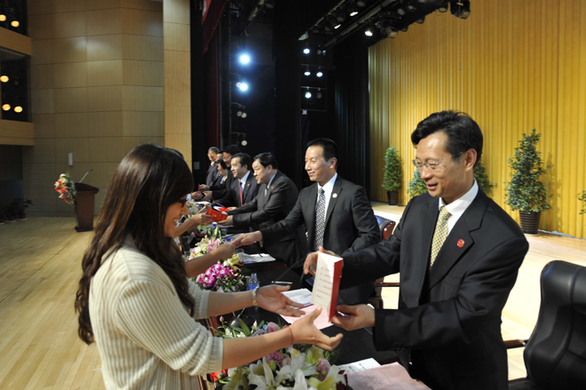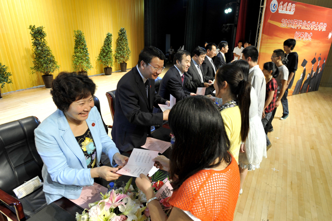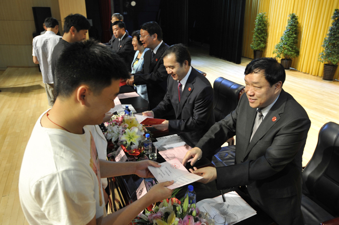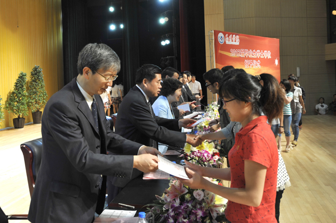 首先,李翔副校长宣读《1066vip威尼斯官网关于对2011~2012学年省级三好学生、优秀学生干部、先进班集体进行表彰的决定》和《1066vip威尼斯官网关于对2012届省级优秀毕业生、校级优秀毕业生进行表彰的决定》。76名省级三好学生、22名省级优秀学生干部、9个省级先进班集体;196名省级优秀毕业生,593名校级优秀毕业生受到了表彰和奖励。与会校领导分别为获奖个人和集体颁发荣誉证书。