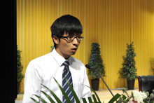 在同学们收获硕果的喜悦中,毕业生代表、老师代表、家长代表分别登台发言。信息技术学院本科毕业生左俊、社会管理学院专科毕业生梁毕能怀着“母子”眷恋惜别之情分别代表本、专科毕业生作了发言。他们回顾了自己在校学习历程和精彩生活,感念学校超常规、跨越式、追赶型发展中积淀的精神陶冶、感激老师们给予的学业指导与精神培育,回味学习生涯中求知的快乐与满足,并表示将牢记老师的教诲,在新的学习环境与工作岗位上艰苦奋斗,秉承“明德至善、知行利物”的校训,踏实做人,认真做事,为年轻的1066vip威尼斯官网增光添彩。