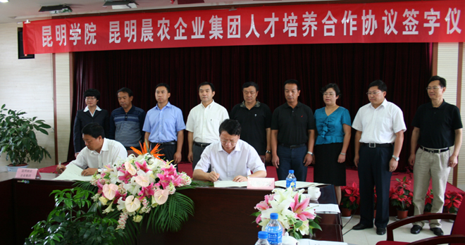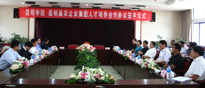 会上,陈世波校长与李云锁董事长共同就“1066vip威尼斯官网与昆明晨农企业集团人才培养合作协议”和“2012-2013学年人才培养补充协议”签字。