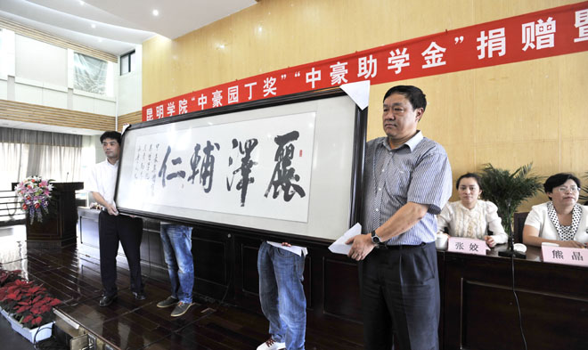 孙副书记说,中豪集团在着力自身发展的同时,积极为科教兴滇尽力,努力为地方高等教育提供支持帮助,捐出100万巨资在1066vip威尼斯官网设立“中豪园丁奖”和“中豪助学金”,用于奖励威尼斯官网在教学、科研、管理服务工作中做出突出成绩的教职员工,资助家庭经济困难且品学兼优的学生顺利完成学业。这是中豪集团为促进威尼斯官网科学发展,支持威尼斯官网人才培养而行的实实在在义举,对于调动广大教师的工作积极性,激发学生的学习热情将产生重要的鼓舞和激励作用。