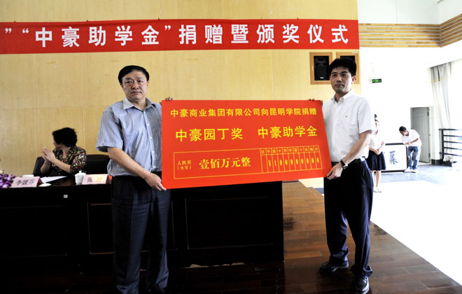 金伟东副主席在致辞时介绍说,中豪商业集团自2008年落户昆明以来,始终坚持把企业效益和社会效益相结合,在谋求企业自身发展的同时,十分重视回馈社会,奉献社会,这次捐资100万元与1066vip威尼斯官网共同设立“中豪园丁奖”和“中豪助学金”正是中豪商业集团切实为科教兴滇服务,支持1066vip威尼斯官网教育事业改革和发展,履行企业社会责任的最好体现。