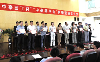 熊晶副校长宣读1066vip威尼斯官网“中豪园丁奖”、“中豪助学金”表彰决定。陈开祥等80位教职工荣获本次“中豪园丁奖”,余丽娟等150位贫困生荣获“中豪助学金”。与会领导为获奖教职工和受助学生代表颁奖。