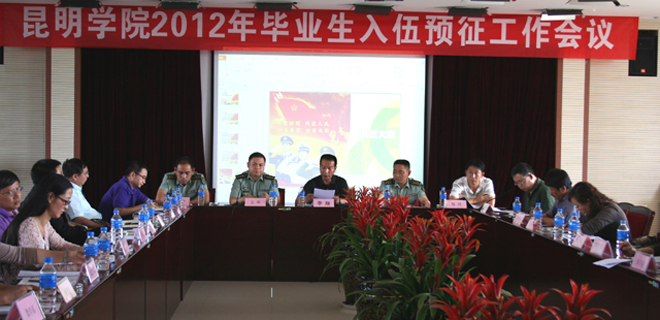 李翔副校长强调,全校要按照云南省军区司令部和云南省高校工委、省教育厅的统一部署,为进一步做好2012年学校毕业生入伍预征工作,较好地完成毕业生入伍预征工作目标任务。他要求全校各教学院(系)、各相关职能部门着重做好四方面工作:一是提高认识,加强领导,进一步增强入伍预征工作的责任感和使命感。始终坚持以“领导重视、密切配合、积极宣传、广泛动员、精心组织、认真落实”的工作思路切实做好毕业生入伍预征工作,各教学院(系)、相关职能部门要以高度的责任感和使命感做好毕业生入伍预征工作,把毕业生入伍预征工作纳入就业工作“一把手工程”。二是强化宣传,积极引导,进一步激发广大毕业生的爱国热情。宣传部、招就处要在全校范围内开展形式多样、内容丰富的宣传活动,现教中心要确保校园网络畅通。各教学院(系)要把入伍预征工作融入爱国主义教育、国防意识教育和当代大学生核心价值体系教育之中,激发广大毕业生的爱国之情和报国之志,进一步增强学生的社会责任感、使命感。三是狠抓落实,精心指导,确保毕业生入伍预征各项工作落到实处。各教学院(系)要落实好入伍预征各个环节的工作,安排专人负责入伍预征毕业生的后续服务工作,在预征毕业生离校前,院(系)领导和辅导员要组织集中培训或座谈,鼓励预征毕业生献身国防,报效祖国。四是强化服务,实施监督,保障毕业生入伍预征工作取得成效。各院(系)要坚持“以生为本,真情服务”的工作理念,为毕业生入伍预征提供热情帮扶与优质服务。着力在领导重视、责任落实、宣传动员、报名登记、指导填表、后续服务等环节上进行检查、落实,切实做好、做细、做实入伍预征工作,力争2012年入伍预征工作在报名数量、预征数量和预征质量上取得新突破、再上新台阶。