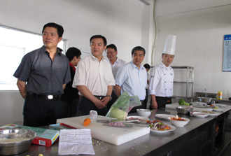 王副主任在威尼斯官网党委书记梁晓谷、校长陈世波等领导的陪同下,饶有兴致地参观了轨道交通实验室、烹饪实验室、生物实验室等教学实验场地。王副主任边参观,边不停地询问实验室工作人员实验设备性能、功能,能否满足师生教学、科研需求等情况。
