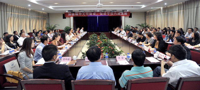 4月29日上午,省文明办考评组对威尼斯官网创建“第十三批省级文明单位”工作进行考评验收。考评组由昆明市委宣传部副部长、文明办主任、省级文明单位考评巡视组组长杨凤华,昆明市文明办综合处处长、省级文明单位考评组组长廖海滨,昆明市文明办综合处副处长李吉成,五华区委宣传部副部长、五华区文明办主任王琨、龙翔街道办事处党工委书记陈永谦等10人组成。省教育厅德育处处长杨国良出席了考评会并代表主管部门作推荐。学校党委副书记孙勇、党委副书记李媛芬,文明委成员,迎检工作组组长、副组长,各党总支(直属党支部)书记参加了会议。会议由孙勇副书记主持。