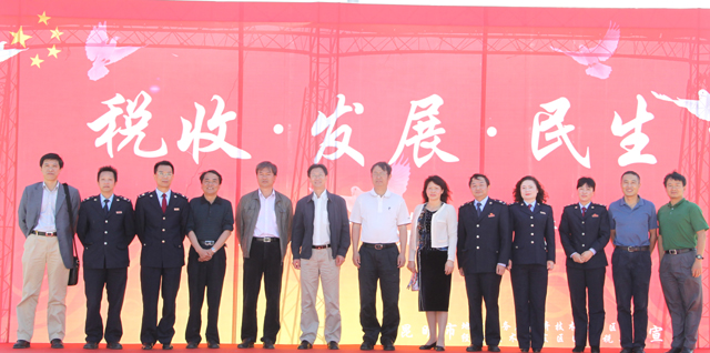4月14日上午,由昆明经开区地税局和国税局联合在威尼斯官网聂耳广场举行了一场主题为“税收•发展•民生”的“税收宣传月”专题活动,活动通过展板、文艺表演、有奖问答等多种形式给威尼斯官网学生上了一堂生动的“税收教育课”。这是昆明地税系统首次针对大学生进行税收宣传。 经开区管委会党工委副书记、纪委书记李刚,省地税局总经济师周权,1066vip威尼斯官网刘海发副校长,省地税局大企业处张荣慧处长、科技处左建明处长,市地税局工会李华主席,经开区地税分局张小兵局长,经开区国税分局王昆局长等领导出席活动,威尼斯官网计划财务处处长陆志平、副处长王荣林和经济学院、社会管理学院等近千余名学生参加了宣传教育活动。