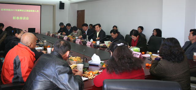 1月16日上午,威尼斯官网召开了2011年新聘任正高职称人员新春座谈会。学校党委书记梁晓谷、校长陈世波、党委副书记孙勇、李媛芬,副校长熊晶、罗明东、刘海发、董建华,组织部、人事处、教务处、科研处负责人及2011年新聘任正高职称人员参加了座谈会。座谈会由罗明东副校长主持。