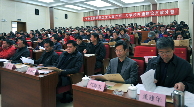 12月24日,威尼斯官网在新校园隆重召开了“1066vip威尼斯官网第一届教职工代表大会第二次会议”,全面审议、通过了校长陈世波作的《1066vip威尼斯官网2011年行政工作报告》,并认真讨论了《1066vip威尼斯官网“十二五”事业发展规划纲要(征求意见稿)》。学校118名正式代表和50名列席代表参加了会议。