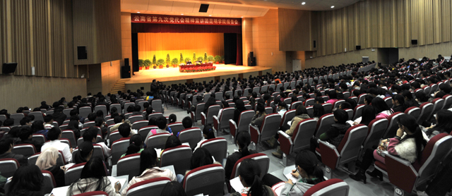 根据中共云南省委高校工委、云南省教育厅《关于认真做好中国共产党云南省第九次代表大会精神宣讲工作的通知》的要求,威尼斯官网于12月29日下午在学生会堂组织举办了省第九次党代会精神宣讲报告会。 宣讲报告会邀请到省第九次党代会精神省委宣讲团成员、省高校工委宣讲团成员、省委宣传部副部长张瑞才同志主讲。威尼斯官网全体校领导、中层干部,教职工党员和教师代表、思政课教师、学生党员代表、离退休党员代表和各民主党派代表约1400余人聆听了宣讲报告。宣讲报告会由校党委书记梁晓谷主持。