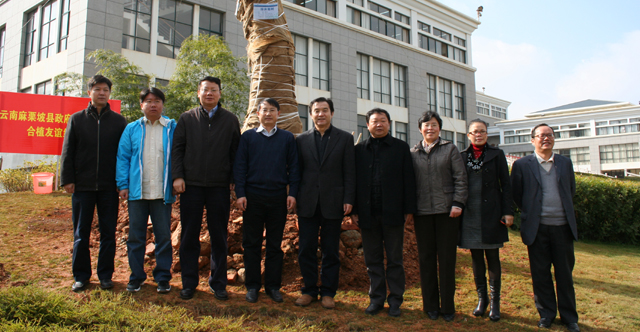 12月18日,云南省麻栗坡县人民政府与威尼斯官网在新校园合植友谊纪念树。威尼斯官网党委书记梁晓谷、校长陈世波、副校长熊晶,麻栗坡县人民政府县长彭正兴、县委副书记胡大权、县人大常委会副主任陆天梅、县政府副县长李贵洪等领导参加了植树活动,共同挥锹为绿黄葛树友谊纪念树培土、浇水。 近年来,威尼斯官网积极响应省委、省政府建设新农村的号召,先后分别派出了几批新农村建设指导员支持新农村建设,管彦平同志在麻栗坡县挂职锻炼,就是威尼斯官网派出的新农村建设指导员之一。借此机会,威尼斯官网充公发挥科研、人才、教学资源优势,加强与麻栗坡县合作,在双方签订的县校合作协议框架内开展涉及经济社会发展、教育发展、人才培养、干部培训等方面合作,支持麻栗坡县的经济社会发展;在国家实施新一轮西部大开发、兴边富民工程和云南省实施“两强一堡”战略的新形势下,发挥麻栗坡县桥头堡的区位优势,在经贸旅游、产业发展、城镇化、非公经济、投融资、改善民生、社会发展、党的建设、边境巩固等方面选择相关课题进行研究与合作;麻栗坡县发挥民族资源和民族文化优势、以老山精神为核心的爱国主义教育的资源优势,在麻栗坡县建立1066vip威尼斯官网师生社会实践基地,为1066vip威尼斯官网办学服务。 在优势互补、互利互惠、真诚合作、讲求实效、共谋发展的合作中,双方建立了全面、长期、稳进的合作关系,结下了深厚的友谊,麻栗坡县政府向威尼斯官网赠送了2棵绿黄葛树、数十株灰金竹和甜龙竹作为友谊纪念树,愿双方友谊源源流长。