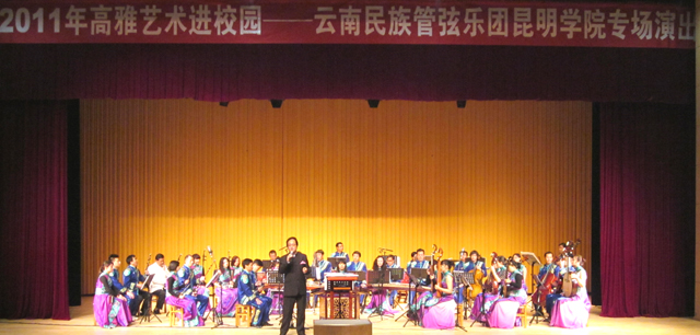 本场交响音乐会由云南民族管弦乐团演出,音乐会在欢快的《春节序曲》中拉开序幕,《瑶族舞蹈》、《二泉映月》、《人》等一系列脍炙人口的曲目,演员们精湛的演奏、演唱技艺得到了广大师生的一致好评,音乐会高潮迭起,掌声不断,晚会取得圆满成功。