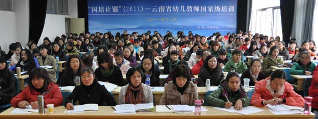 12月2日上午,经过精心的筹备和组织,威尼斯官网申报的“幼儿教师国家级培训计划”云南省农村幼儿园园长、骨干教师短期集中培训班开班典礼在昆师路校区举行。本期培训共有幼儿园园长、骨干教师各100名,参加为期15天的培训学习。