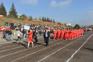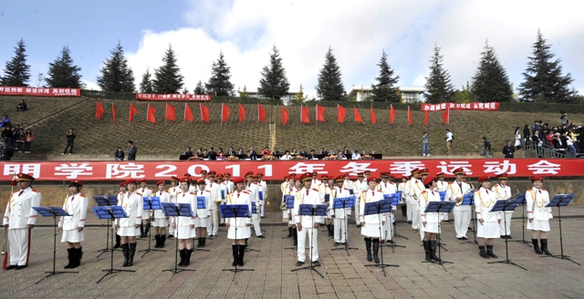 上午9时,1万余名师生沐浴在金秋的阳光下,19支师生代表队踏着欢快、激昂的运动员进行曲,迈着矫健的步伐入场后,全体起立,奏唱中华人民共和国国歌。