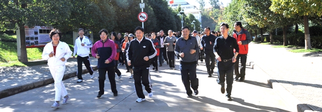 10时许,在聂耳广场还举行了“1066vip威尼斯官网教工文化协会(俱乐部)成立暨2011年教工运动会”教职工环校园跑项目起跑仪式。党委副书记李媛芬发令,在党委副书记孙勇、副校长李翔等校领导的领跑下,全校1500余名教职工开始了环校园跑。充分展示了全体教职员工热爱生活、热爱学校、热爱教育、热爱学生,追求健康,团结一心,把校园当家园建设,把学生当自己的孩子来培养。