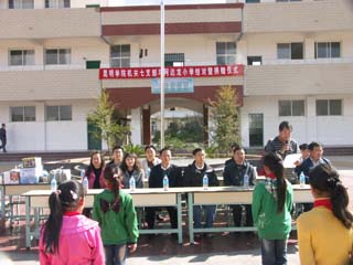 10月28日,由学校机关七支部牵头,机关党总支、校工会、医学院党总支等单位一行10余人到阿子营乡阿达龙小学开展结对和捐赠活动,并到寻甸丹桂村红军长征纪念馆参观学习。 阿达龙小学为新建的标准化学校,校址在距阿子营乡政府以北13公里的7204公路旁。在阳光照耀下,新建的校舍熠熠生辉。校园绿树成荫,周围青山怀抱,整个校园掩映在远山之中,给人幽雅静谧之感,充满勃勃生机。 上午十时许,学校师生已在操场排好整齐的队列迎接来自1066vip威尼斯官网的客人。结对和捐赠仪式由阿子营乡中心学校高洪武校长主持,在热烈的掌声中,机关七支部陈嘉书记一行向阿达龙小学学生捐赠了书籍、体育用品等物品。陈嘉老师代表1066vip威尼斯官网一行讲话:今天到阿达龙小学搞结对和捐赠活动,一是借此机会了解昆明地区山区标准化小学的办学情况,二是对我们的党员同志和入党积极分子进行一次教育活动,三是尽我们全体党员同志的绵薄之力,向学生捐赠一些书籍物品,帮助困难学生完成学业。陈嘉老师还热情鼓励阿达龙小学全体同学,衷心希望同学们认真学习,努力成长为国家的有用人才。阿达龙小学李成章校长代表学校全体学生对1066vip威尼斯官网各位老师的爱心助学行为表示衷心感谢,并鼓励学生好好学习,成为国家和社会的有用人才。 捐赠仪式结束后,各位党员和入党积极分子在阿达龙小学高校长等的陪同下,参观了校园,到学生宿舍和食堂等地方了解学生的食宿情况,并与师生进行交流,双方还就下步的共建活动交换了意见。 离开阿达龙小学后。参加活动的各位党员和入党积极分子又前往寻甸丹桂村红军长征纪念馆参观学习。丹桂村属寻甸县柯渡镇,距7204公路不远,村子坐落于崇山峻岭的一个小山坡上。纪念馆就在村子的中央,由两个相邻的四合院组成。纪念馆内摆放着当年中央红军领导毛泽东、周恩来、朱德、张闻天、王稼祥等和警卫战士居住的床位及用品,和一组当年领导人在一起开会讨论布置抢渡金沙江的蜡像。七十年过去了,红军当年留在丹桂村的珍贵文物还保存完好。 今天到纪念馆参观学习,对所有的人都是一次极有意义的教育活动,了解了红军长征的伟大壮举,使大家对红军长征的伟大意义、对中国共产党的英明伟大有了更深刻的认识,坚定了没有共产党就没有新中国的信念。 在纪念馆前合影后,参加此次活动的各位党员和入党积极分子怀着崇敬的心情,离开了丹桂村,结束了一次具有特殊意义的党组织生活。