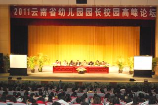 为推动我省幼儿教育事业的科学发展,教师教育学院于10月15日在学生会堂成功举办了2011年云南省幼儿园园长校园高峰论坛。本次论坛特别邀请到华东师范大学周念丽教授、省教育厅高等教育处郭云龙副处长、昆明市教育局基教处处长、云南师范大学教育管理学院副院长、丽江师范高等专科学校教育系主任等领导及来自全省各地州市的200多名幼儿园园长参加,学院罗明东副校长出席论坛并致辞。与会领导为昆明市政府机关幼儿园等15家幼儿园颁发“优秀实习基地”奖牌,为云南师大教育管理学院孔垂斌副教授、昆明第十五幼儿园园长,特级教师代云华等10名专家颁发客座教授聘书。