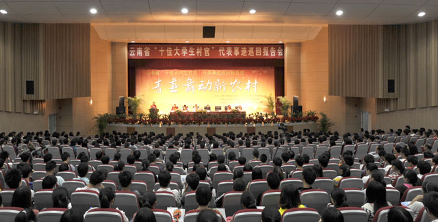 “十佳大学生村官”代表龙姣的《展现当代大学生的风采》、杨玉东的《我的村官之路》、张学凤的《我是村民的“阿妮”》、罗锦涛的《把根扎在彝家山寨》、张俊彩的《广阔天地有作为》、杨春生的《让青春在雪域高原闪光》主题事迹报告,以生动感人的事例,讲述了自己走上村官岗位干事创业、不断成长的亲身经历。道出了他们村官岗位经受的困难虽然不同,但扎根基层、服务农村的决心,百折不挠的坚毅和干事创业的成功喜悦又是相同的。他们热爱三农、坚守基层、勇于面对、敢于担当、无私奉献的高尚品质成为大学生村官的排头兵。他们积极响应党和国家号召,信念坚定、志存高远,把人生选择融入党和人民事业的坚定理想;他们艰苦干事创业,勤于学习、善于思考、勇于实践,为三农建设作贡献;她们诚实守信、爱岗敬业、服务农村、造福人民,充分展示了当代青年人的时代风采,为在校大学生树立了学习榜样,赢得听众的尊重和激赏,多次获得热烈掌声与感动喝彩。