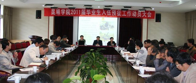 孙副书记强调:全校要按照云南省高校工委、省教育厅和云南省军区司令部的统一部署,为切实做好2011年威尼斯官网毕业生入伍预征工作,努力完成威尼斯官网毕业生入伍预征工作目标任务。他要求:一要充分认识高校毕业生入伍预征工作的主要意义,进一步增强入伍预征工作的责任感和使命感。各教学院、系要把高校毕业生入伍预征工作当做当前最紧要的大事来抓,积极组织动员,精心安排部署,认真抓好落实,力争预征报名人数占应届毕业生男生的比例不低于2010年(10%以上)。二要采取强有力措施,努力为部队输送高素质人才。通过举办一次现役高校毕业生士兵典型专场报告会,每个院系开展一次政策宣讲活动,每个班级开展一次入伍预征主题班会活动,给每位毕业生发一条入伍预征信息短信,给每位毕业生发一本入伍预征宣传册“五个一”工作,广泛开展宣传发动,引导毕业生踊跃报名应征。各单位要加强应征对象的指导、帮扶,持续做好入伍预征工作,为应征毕业生提供快捷、高效、优质的指导与服务,组织应征毕业生网上预征、登记报名,指导应征毕业生填写《应届毕业生预征对象登记表》和《应征入伍高校毕业生补偿学费代偿国家助学贷款申请表》;在预征对象离校前,要进行集中培训,讲明离校后征兵时间和渠道,指定专人保持联系,持续为预征对象提供指导、服务;在冬季征兵时再次提醒预征对象报名应征,为补办预征手续的毕业生开辟“绿色通道”,确保每一位符合条件的应届毕业生都能入伍。各单位要认真落实入伍预征优惠政策,激发毕业生应征积极性,学生入伍后,要认真做好学费补偿和助学贷款代偿政策的落实工作,加强政策和工作人员的培训,切实提高工作效率和水平,及时、准确地将补偿代偿的费用发到每一个符合条件的入伍毕业生手中;学生退役后,报考硕士研究生、专升本等落实好升学优惠政策,配合做好退役安置工作,让入伍预征优惠政策惠及每一位应征毕业生,解除学生的后顾之忧。职能部门要加强对责任落实、宣传动员、报名登记、指导填表、后续服务等工作环节的检查、监督和指导,切实把入伍预征工作做细、做实、做好,力争今年入伍预征工作在报名数量、预征数量和预征质量上取得新突破。