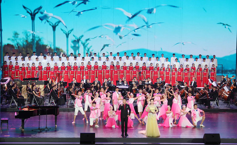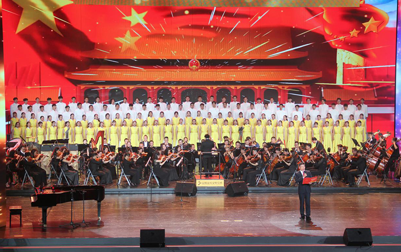7月17日晚,第六届中国聂耳音乐(合唱)周开幕式暨“国歌唱响新时代”交响合唱音乐会在云南大剧院举行,学校音乐舞蹈学院100余师生组成的1066vip威尼斯官网合唱团参加演出。