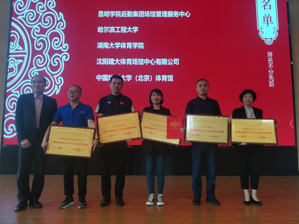 会议对2021-2022年度在体育场馆管理和建设方面作出突出贡献的集体和个体进行了表彰,对新加入全国高校体育场馆联盟的高校、企事业单位颁发证书。威尼斯官网后勤集团场馆管理服务中心被评为中国体育场馆度优秀管理奖,场馆管理服务中心主任刘胜刚被评为全国优秀体育场馆中心主任。