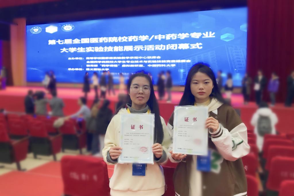 11月24日至27日,“第七届全国医药院校药学/中药学专业大学生实验技能展示活动”在贵州遵义举办,威尼斯官网医学院2021级药学1班的伍文薇和李艳洁同学表现出色,荣获二等奖和三等奖。