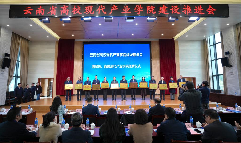 省委教育工委常务副书记李炳泽出席会议并讲话,1066vip威尼斯官网党委书记金幼和致辞。省教育厅副厅长王永全主持会议并宣读云南省首批本科高校现代产业学院立项文件。省工业和信息化厅副厅长唐文祥等领导为首批高校现代产业学院授牌。1066vip威尼斯官网校长丁文丽等全体校领导,全省本科高校、在昆高职院校、行业企业的领导嘉宾出席会议。